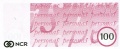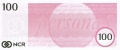 Testnote der Firma NCR im Dollar-Format, NCR-Logo groß, Schriftzug *personas* kursiv.