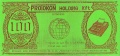 Testnote der Firma Protokon, Prag, Niederlassung Ungarn, roter Druck auf grünem Papier.
