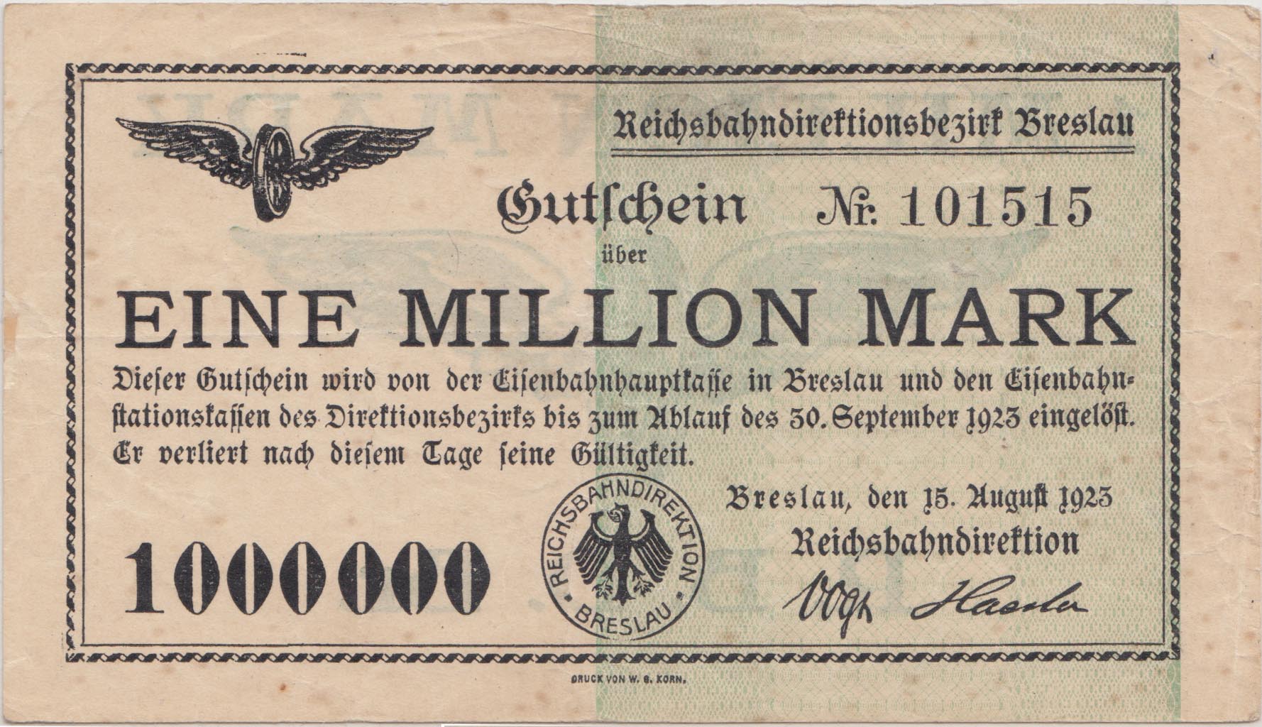Datei:1 Million Mark - 15.08.1923 - Nr.3 mm - Schein 101515-v.jpg