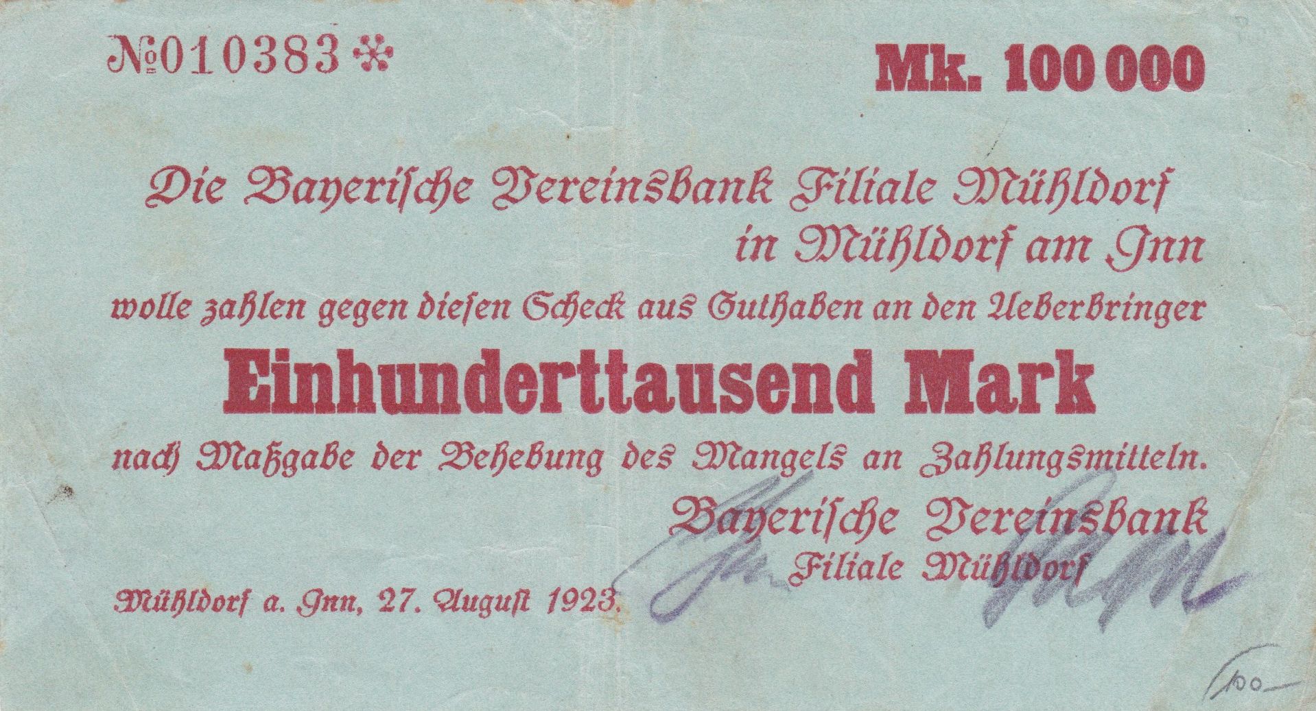 Datei:Mühldorf Vereinsbk 100K 27081923 Vs.jpg