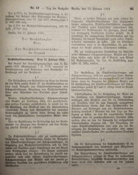 Reichsgesetzblatt 1924 Teil I, S.95, Reichsschuldenordnung
