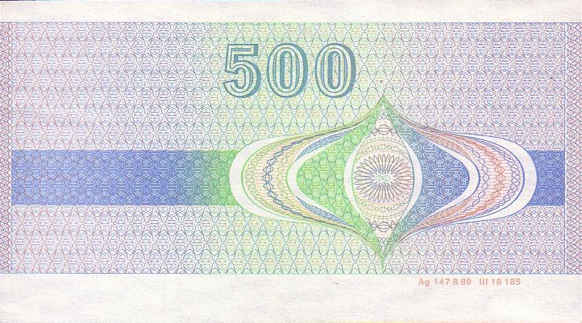 (Reisescheck 500 Mark,Rückseite, DDR, Staatsbank der DDR, Ausgegeben 1985. Bildrechte: Deutsche Münzen)
