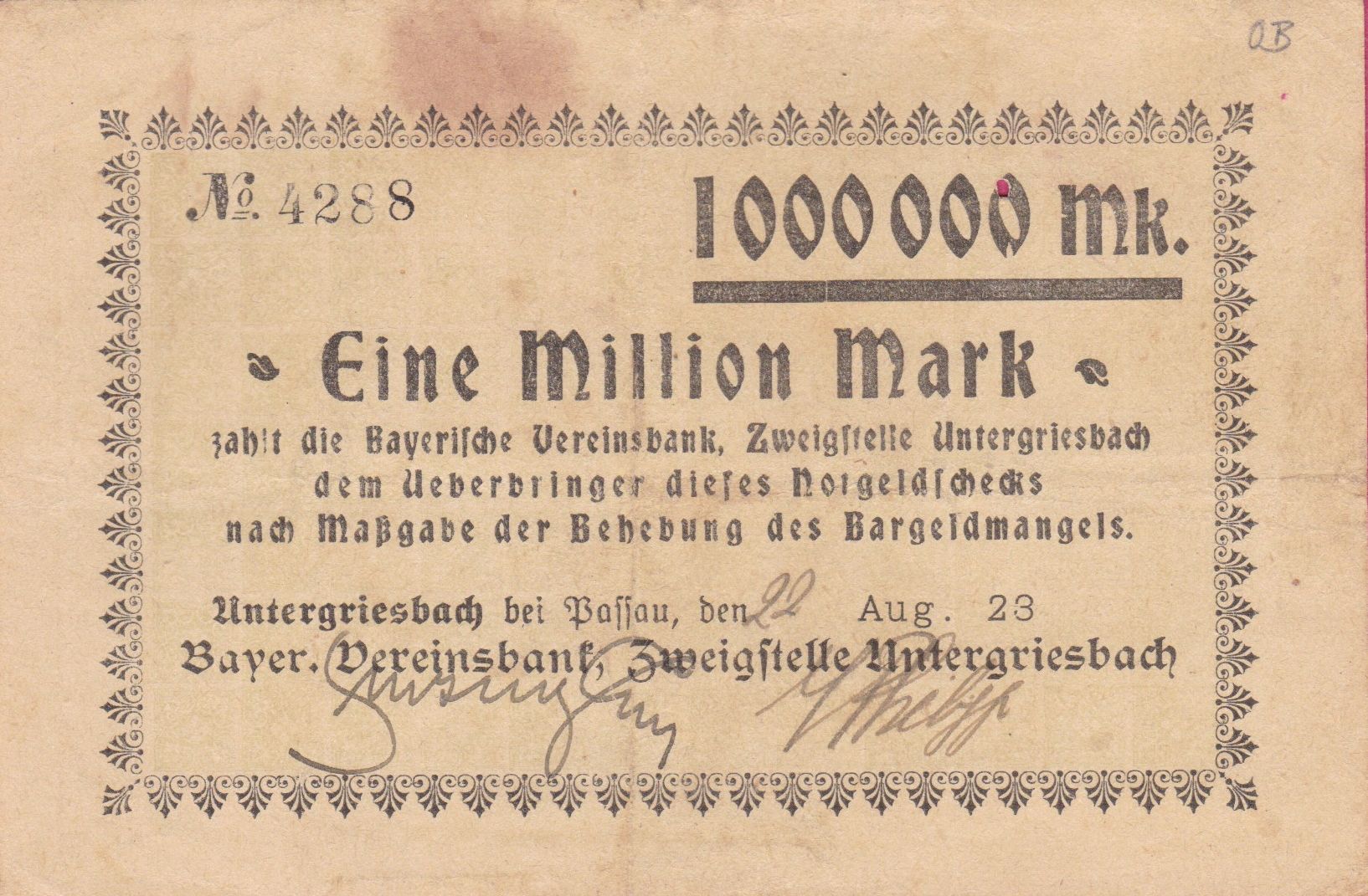 Datei:Untergriesbach Vereinsbank 1 Mio 22081923 Vs.jpg