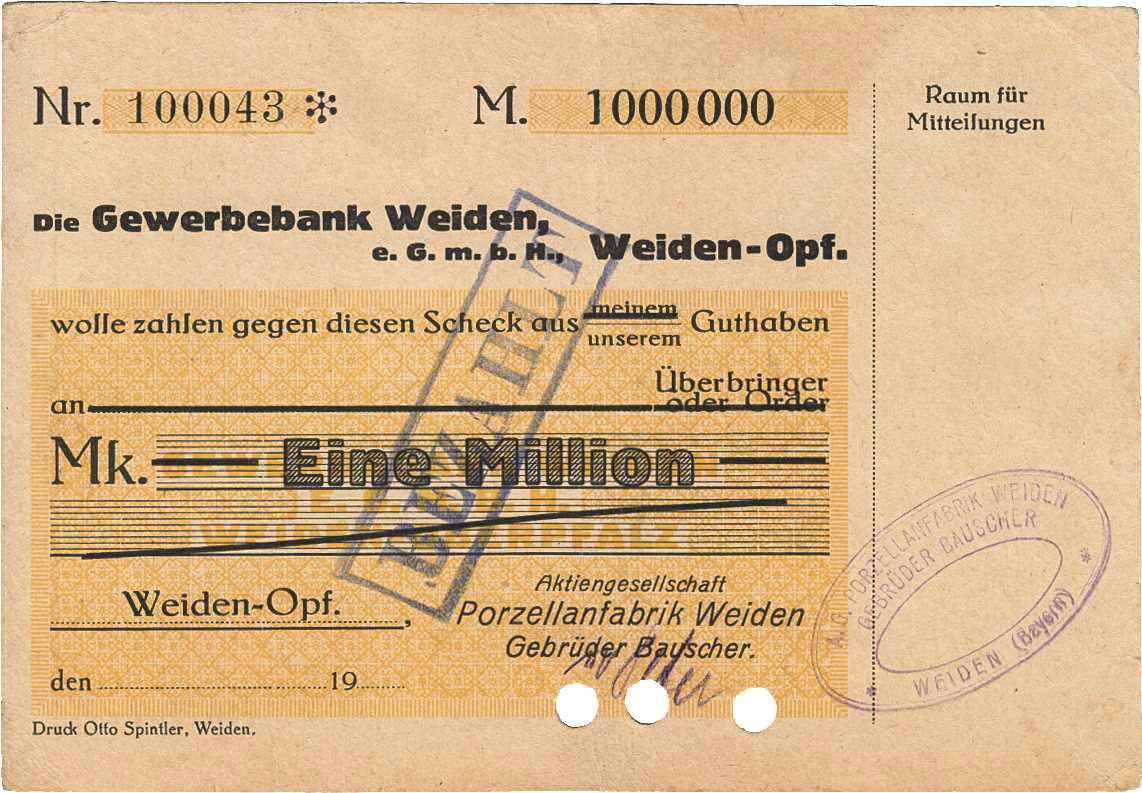 Datei:Weiden Porzellanfabrik Bauscher 1 Mio Blankette Vs.jpg