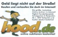 Wertmässig verfremdete 20-DM-Banknote durch das Internet-Auktionshaus www.hood.de, welches mit diesem Werbemittel aus normalem Hochglanzpapier auf seine Aktivitäten aufmerksam machen will.
