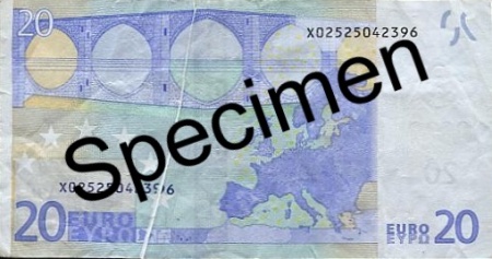 P-3x, 20 Euro, Vorderseite, Quetschfalten