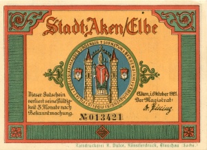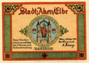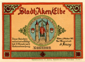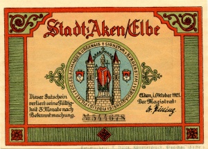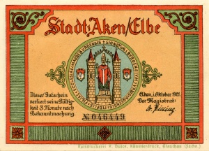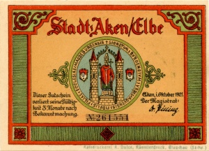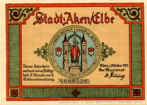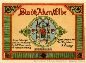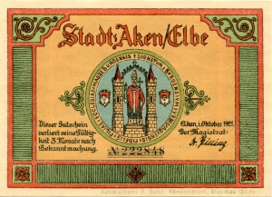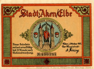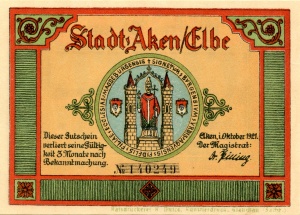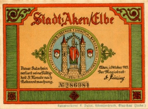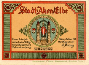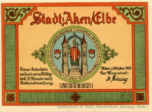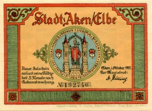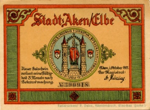 Aken: 50 Pfennig, Ruckseite |