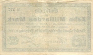 Neben den abgebildeten Scheinen existiert noch ein Schein zu 1 Million Mark in zwei Varianten (kleine und große KN).