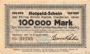 Oederan: 100.000 Mark, Vorderseite
