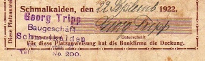 100 Mark, Aussteller Georg Tripp, Baugeschäft