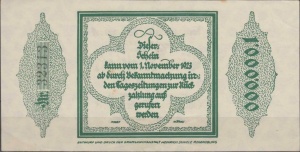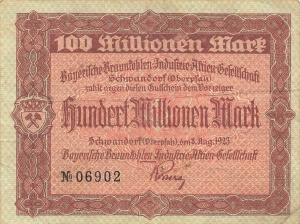 100 Mio; 18.8.23 Wasserzeichen Dreieckrad (im Katalog versehentlich als 100 Milliarden bezeichnet)