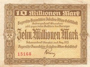 Die Millionenscheine aus Neustadt a.d. Donau, Langquaid, Rohr und der Tonwarenfabrik Schwandorf weisen eine Ähnlichkeit im Design auf.