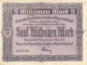 5 Mio; 12.9.23, Wasserzeichen Dreieckrad, kleines Muster im Unterdruck