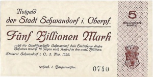 Schwandorf: 1 Billion Mark, Vorderseite