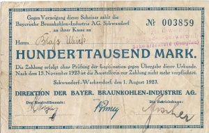 Schwandorf: 100.000 Markk, Rückseite