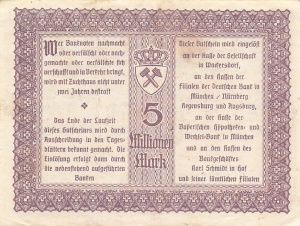 Schwandorf: 1 Million Mark, Rückseite