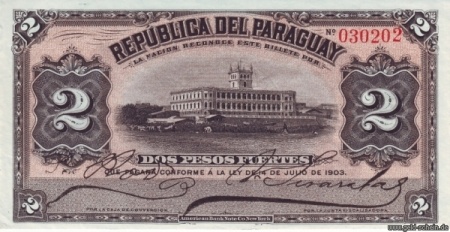 Paraguay: P-107a, 2 Pesos Fuertes, 1903, Vs, Palacio de López