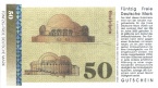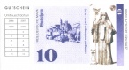 Die Gutscheine der Freien Deutschen Mark unterscheiden sich von den Gutscheinen anderer Initiativen dahingehend, daß versucht wurde, den Scheinen ein Aussehen zu geben, das es ermöglichen soll, die Scheine in jedem Ort Deutschlands lokal als Komplementärwährung einzusetzen. Zu diesem Zweck eignen sich die Gutscheine der anderen Initiativen nicht so gut, weil sie ganz bewußt auf lokale Gegebenheiten Bezug nehmen, die sich folglich thematisch auf eine Region beschränken müssen.