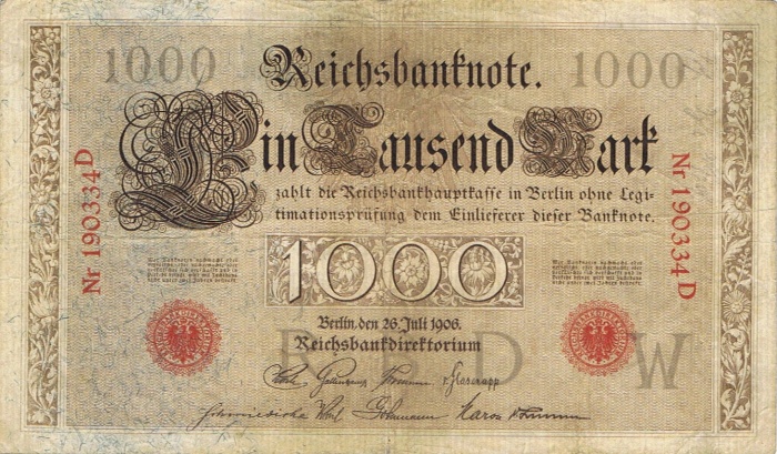 Reichsbanknote zu 1000 Mark IV. Ausgabe Serie 1 vom 26. Juli 1906