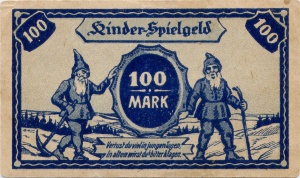 - 4 Typ 4: Spielgeld, angelehnt an Renten- und Reichsmarknoten (ca. 1924-1945)