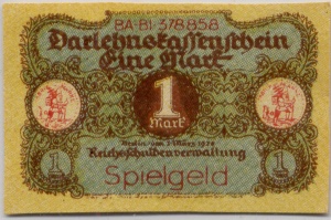 Typ 4: Spielgeld, angelehnt an Renten- und Reichsmarknoten (ca. 1924-1945)