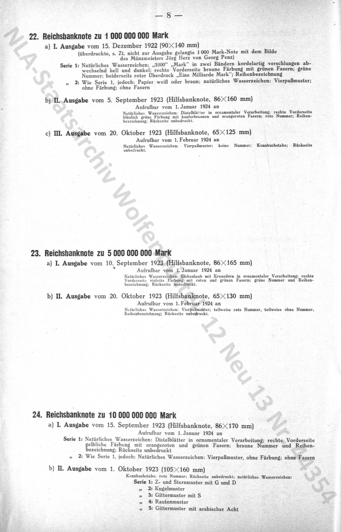 - Uebersicht über die bisher verausgabten Reichsbanknoten, NLA-Staatsarchiv Wolfenbüttel: 12 Neu 13 Nr.44354 193