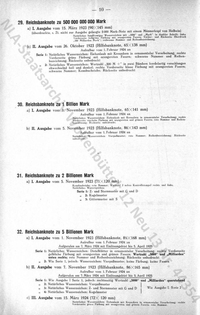 Uebersicht über die bisher verausgabten Reichsbanknoten, NLA-Staatsarchiv Wolfenbüttel: 12 Neu 13 Nr.44354 193-10