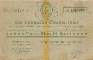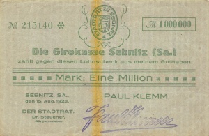 <td>[[Bild:SebnitzKe4733b1MioVs.jpg|thumb|none|300px|'''Sebnitz: 1 Mio. Mark, Vorderseite''']]</td> | <td>[[Bild:SebnitzKe4733b1MioVs.jpg|thumb|none|300px|'''Sebnitz: 1 Mio. Mark, Vorderseite''']]</td> | ||