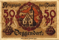 | + | <td>[[Bild:DEG011.jpg|thumb|none|200px|'''Deggendorf, 50 Pfennig '' <br> Vorderseite]]</td> | ||