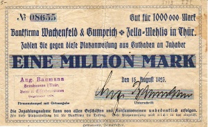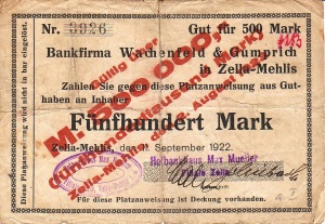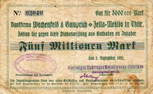 <td>[[Bild:Zella-MehlisWG500TsdMenzVs.jpeg|thumb|none|300px|'''500 Tsd. Mark, Aussteller Adolf Menz Ww., Metallwarenfabrik, Vorderseite''']]</td> | <td>[[Bild:Zella-MehlisWG500TsdMenzVs.jpeg|thumb|none|300px|'''500 Tsd. Mark, Aussteller Adolf Menz Ww., Metallwarenfabrik, Vorderseite''']]</td> | ||