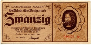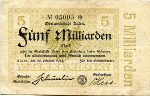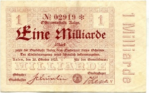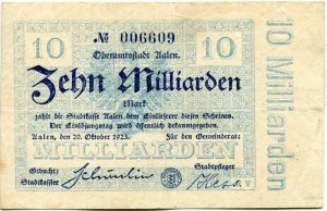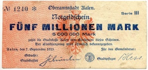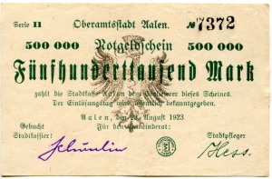 - Benachbarte Städte mit eigenem Notgeld: Ellwangen, Wasseralfingen, Lorch, Neresheim