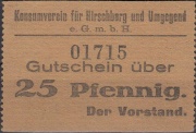 | 20:36, 11. Apr. 2024 | Hirschberg KVH 25Pf Rs.jpg (Datei) | 58 KB | 1 | ||