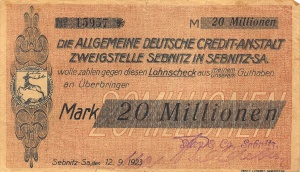Sebnitz: 20 Mio. Mark, Vorderseite