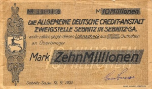 Sebnitz: 10 Mio. Mark, Vorderseite