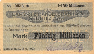 Sebnitz: 50 Mio. Mark, Vorderseite