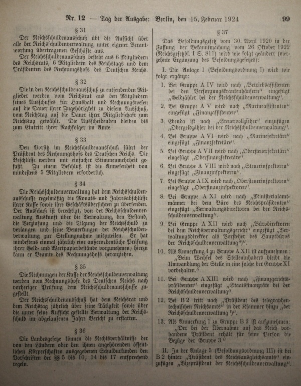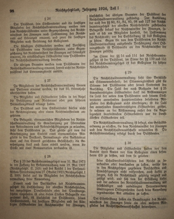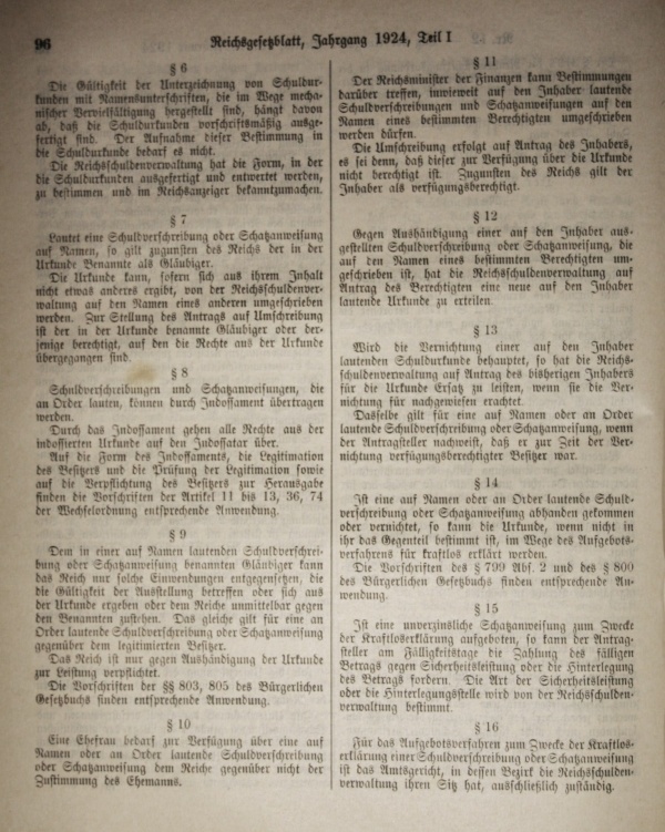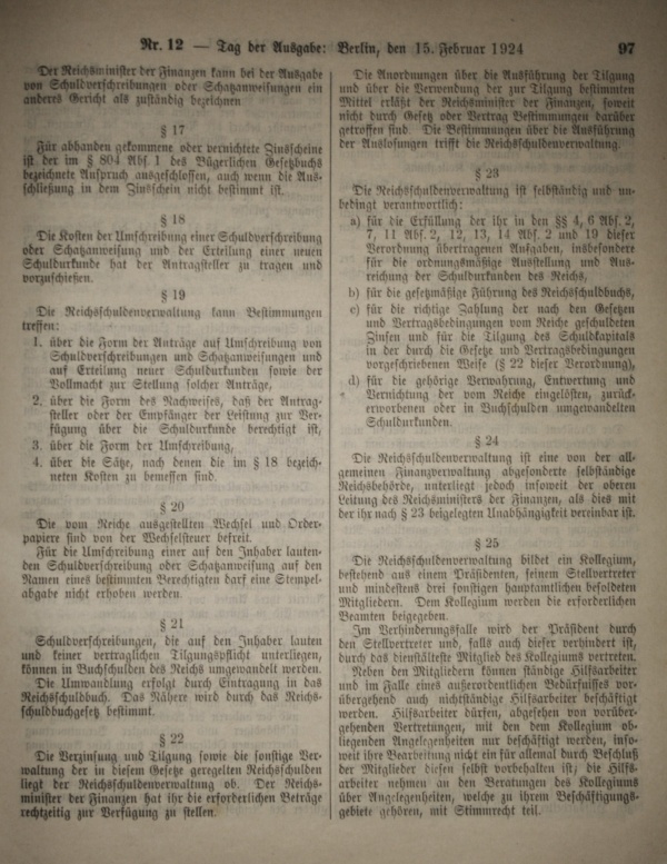 Reichsgesetzblatt 1924 Reichsschuldenordnung
