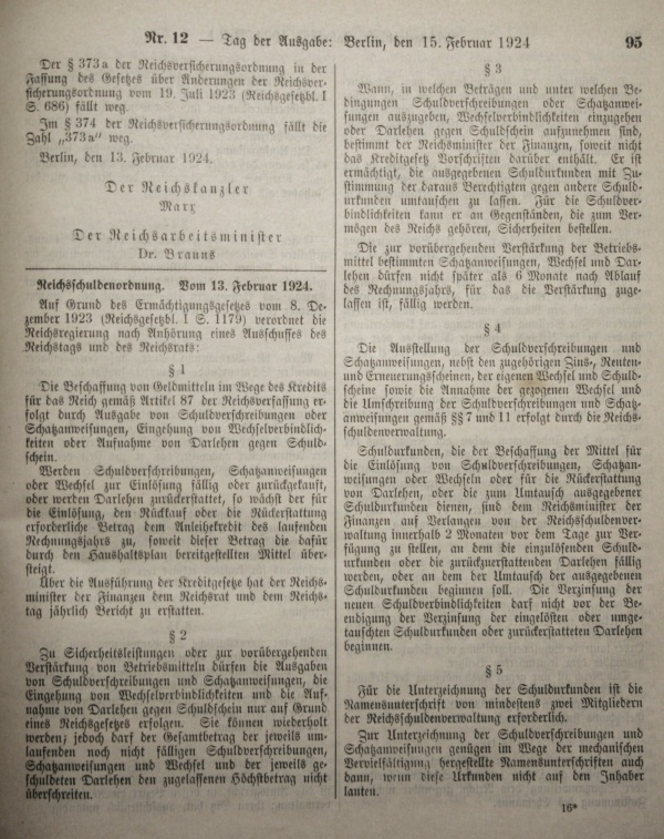 Reichs-Gesetzblatt 1924, Teil I, S. 95; Reichsschuldenordnung. Vom 13. Februar 1924