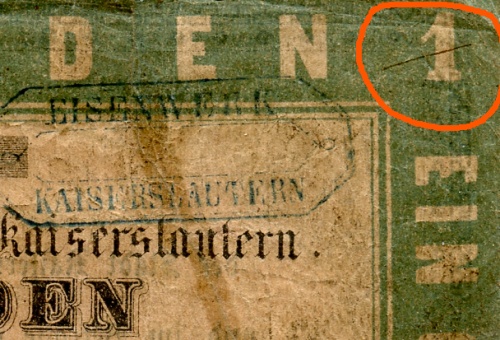 In der Ausgabe Vier des Geldscheinsammler von 1987, hatte Dr. Alexander Persijn sehr Umfangreich die Darlehens-Scheine zu 1, 2 und 5 Gulden der Stadt Kaiserslautern behandelt. Dabei beleuchtete er den historischen Hintergrund wie es zu dieser Ausgabe kam, schilderte eindrucksvoll den bürokratischen Weg mit den verknüpften Bedingungen der zur Ausgabe führte und zeigte auf wie erfolgreich doch diese sehr kleine regionale Ausgabe sich damals in einigen altdeutschen Staaten verbreitete [1]. Gut 27 Jahre später gibt es überraschender weise neue Erkenntnisse, die unter anderem auch aufzeigen warum noch so viele von diesen Scheinen existieren.